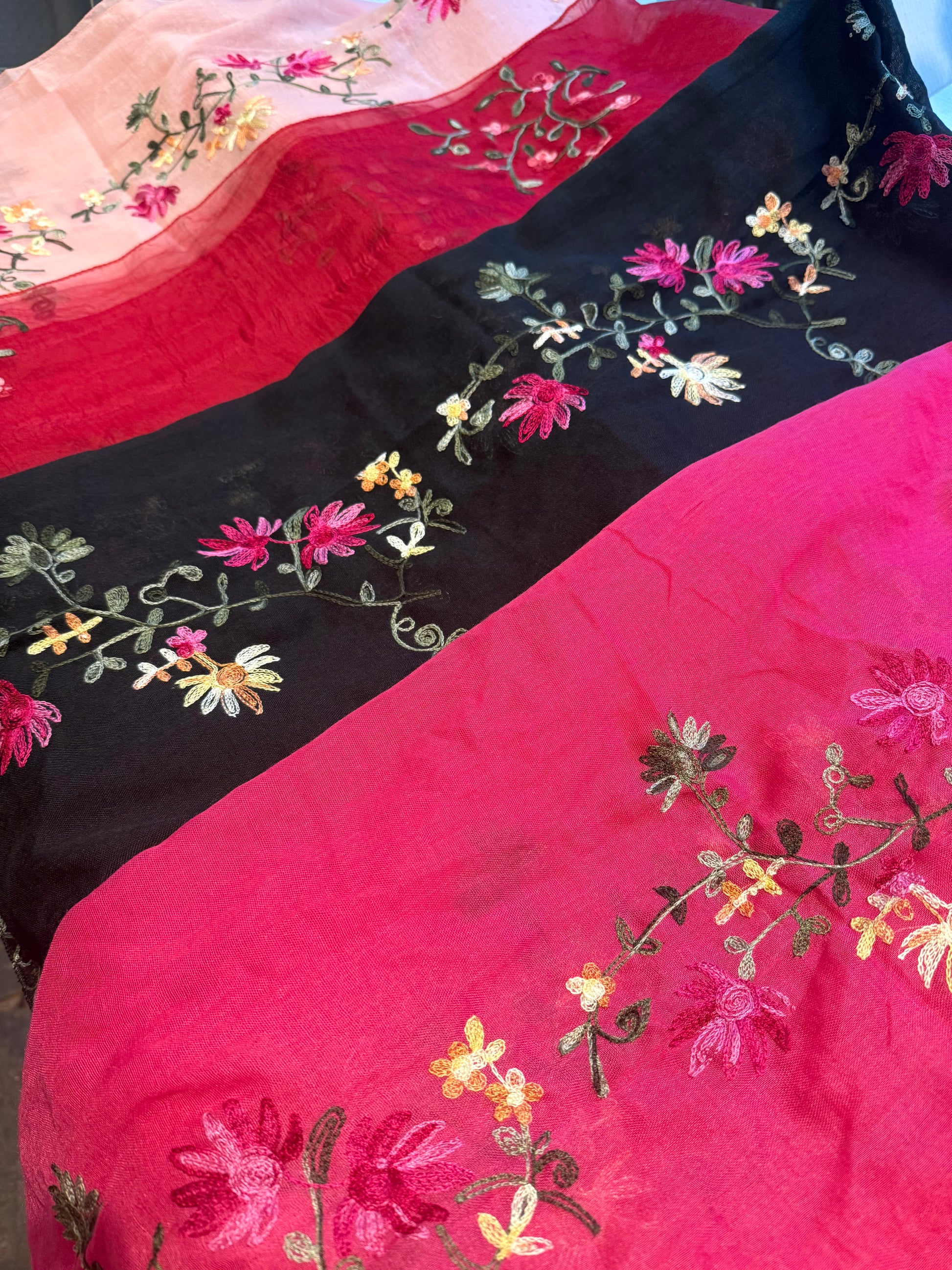 Embroidered Scarf in One of Two stunning designs (Pink, Black or Dark Red)